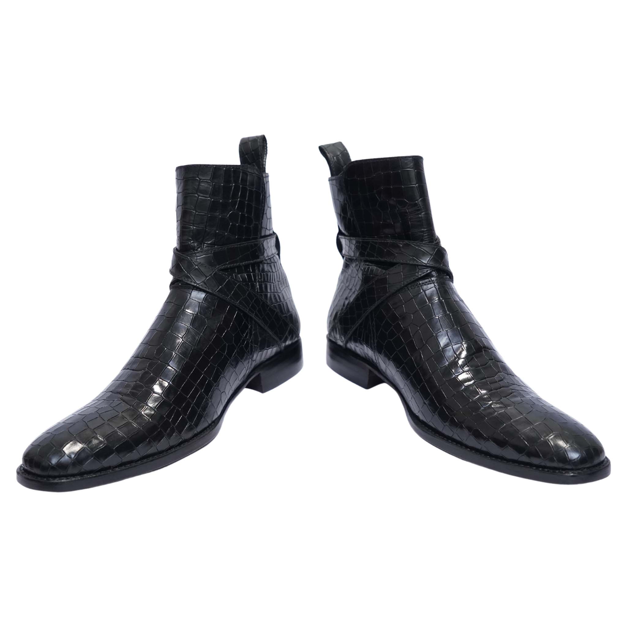 Men's Black Alligator Leather Ankle High Jodhpur Boots