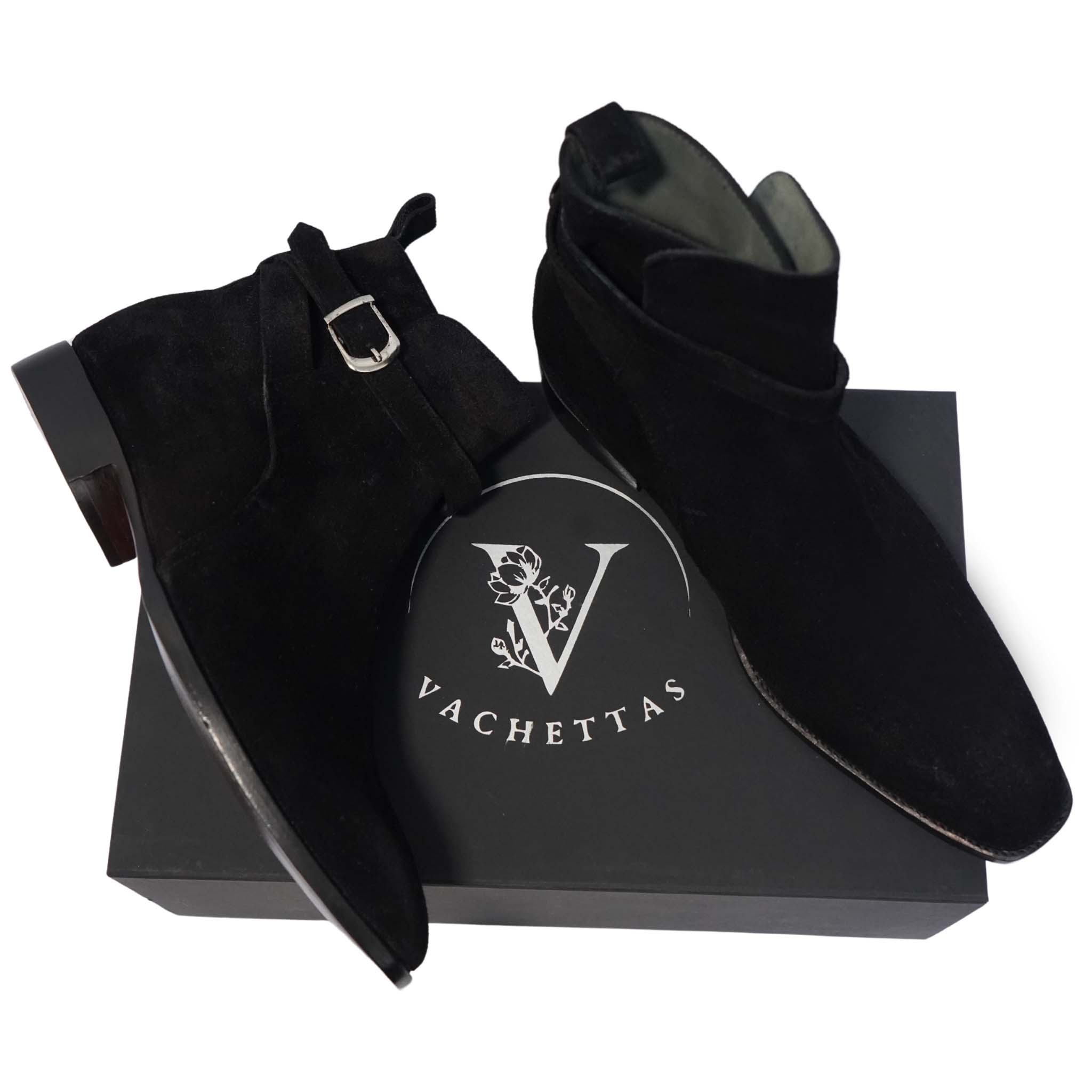 DESCRIPTION MENโ€™S HANDMADE LEATHER BOOTS ๐—จ๐—ฝ๐—ฝ๐—ฒ๐—ฟ: Genuine Suede Leather ๐—œ๐—ป๐—ป๐—ฒ๐—ฟ: Genuine Leather ๐—ฆ๐—ผ๐—น๐—ฒ: Genuine Leather ๐—›๐—ฒ๐—ฒ๐—น: Genuine Leather ๐‚๐จ๐ฅ๐จ๐ซ: Black Style:ย Ankle High Formal Genuine Suede Leather Buckle Strap Jodhpur Dress Boots ๐—ง๐—ผ๐˜๐—ฎ๐—น๐—น๐˜† ๐—›๐—ฎ๐—ป๐—ฑ ๐˜€๐˜๐—ถ๐˜๐—ฐ๐—ต๐—ฒ๐—ฑ Available in any color of your choice. Feel free to contact us for customized color orders....