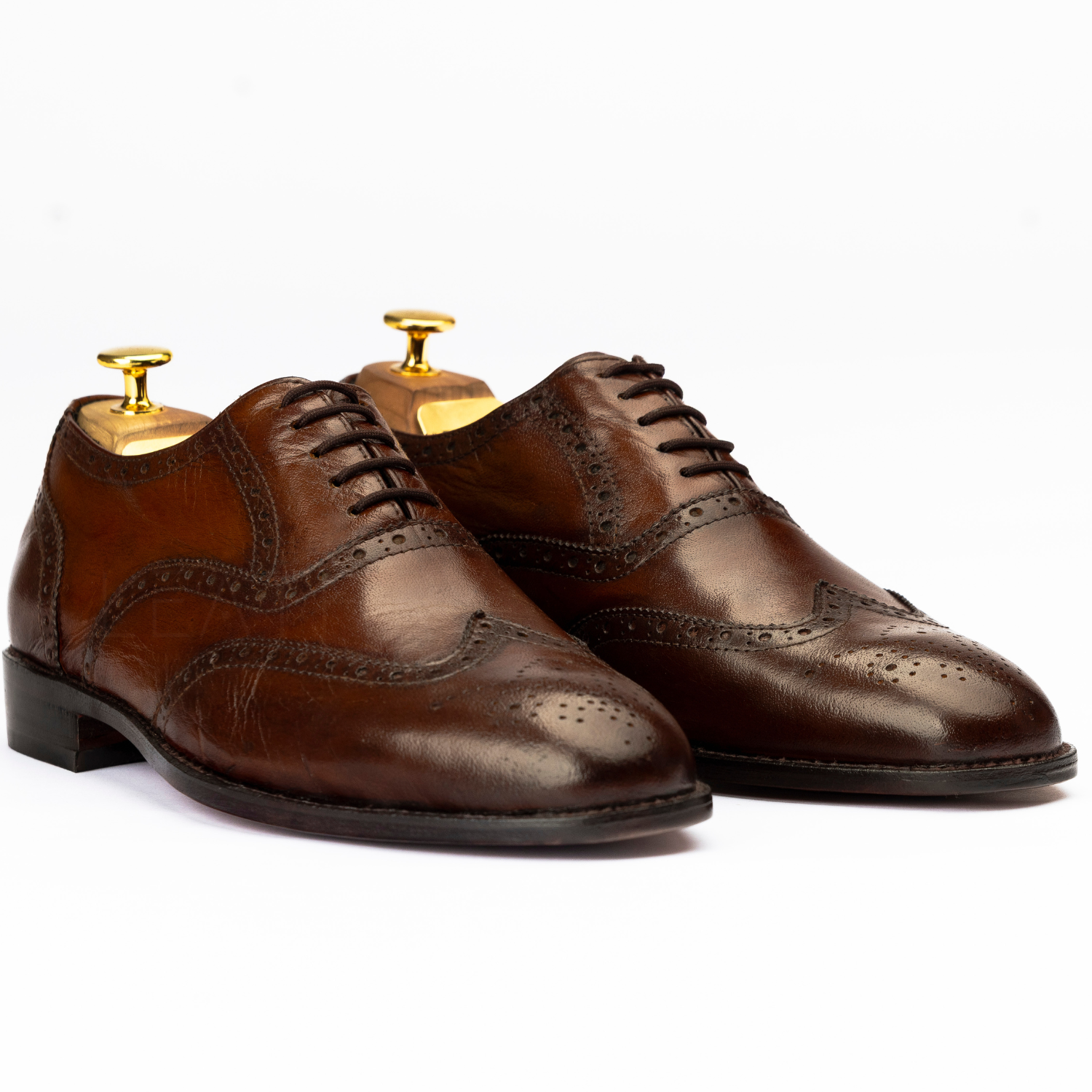 The Carran is a handcrafted full brogue Oxford made from premium burnished brown calf leather with a wingtip design, medallion toe, and Goodyear welted sole. Elegant, durable, and versatile.