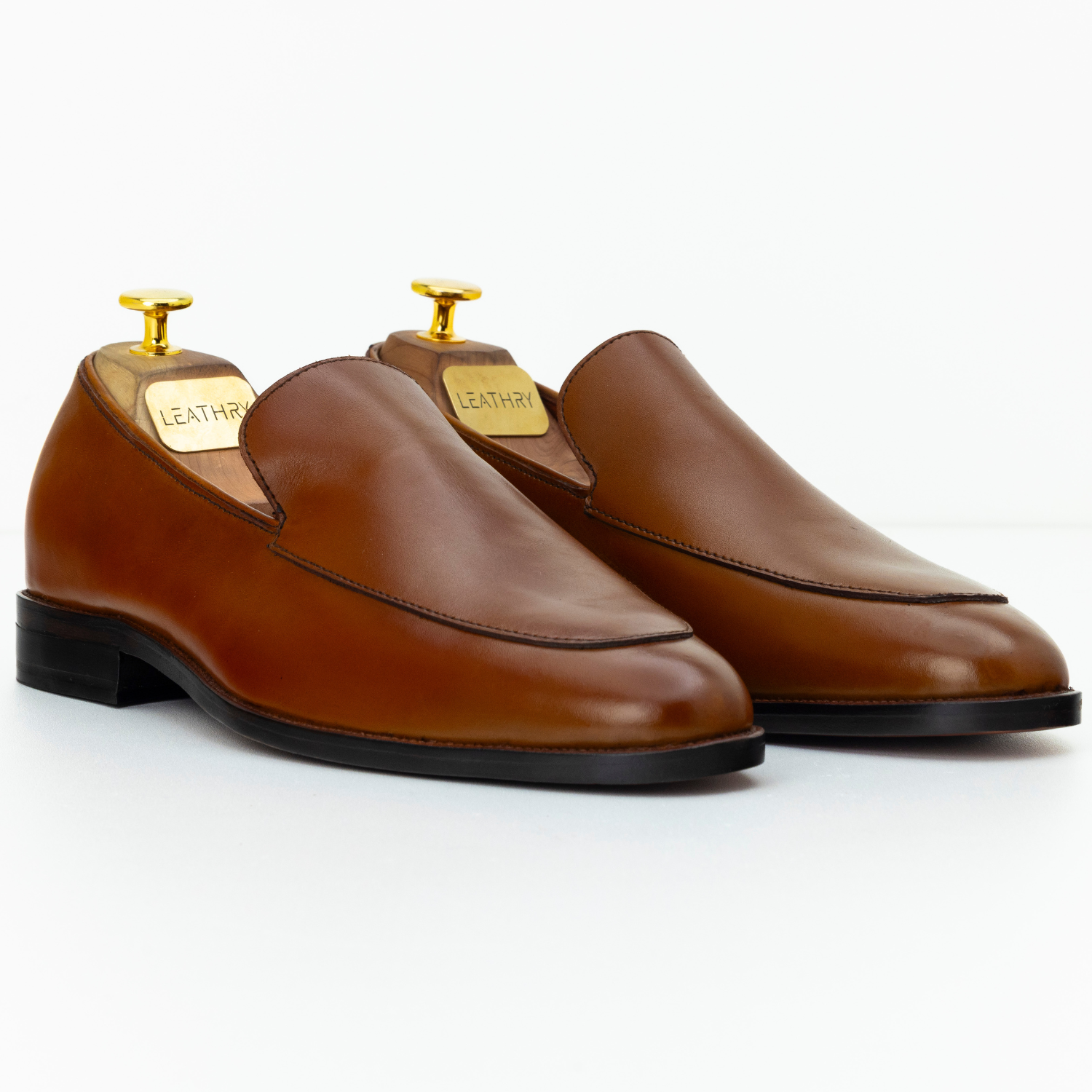 The Garran Calf Leather Slip On is a luxurious loafer handcrafted with premium Italian calf leather in a rich tan brown hue. Featuring a Goodyear welted leather sole, round toe, and leather-wood stacked heel, it offers timeless elegance and exceptional comfort. Ideal for both formal and casual occasions, The Garran is a versatile wardrobe essential.