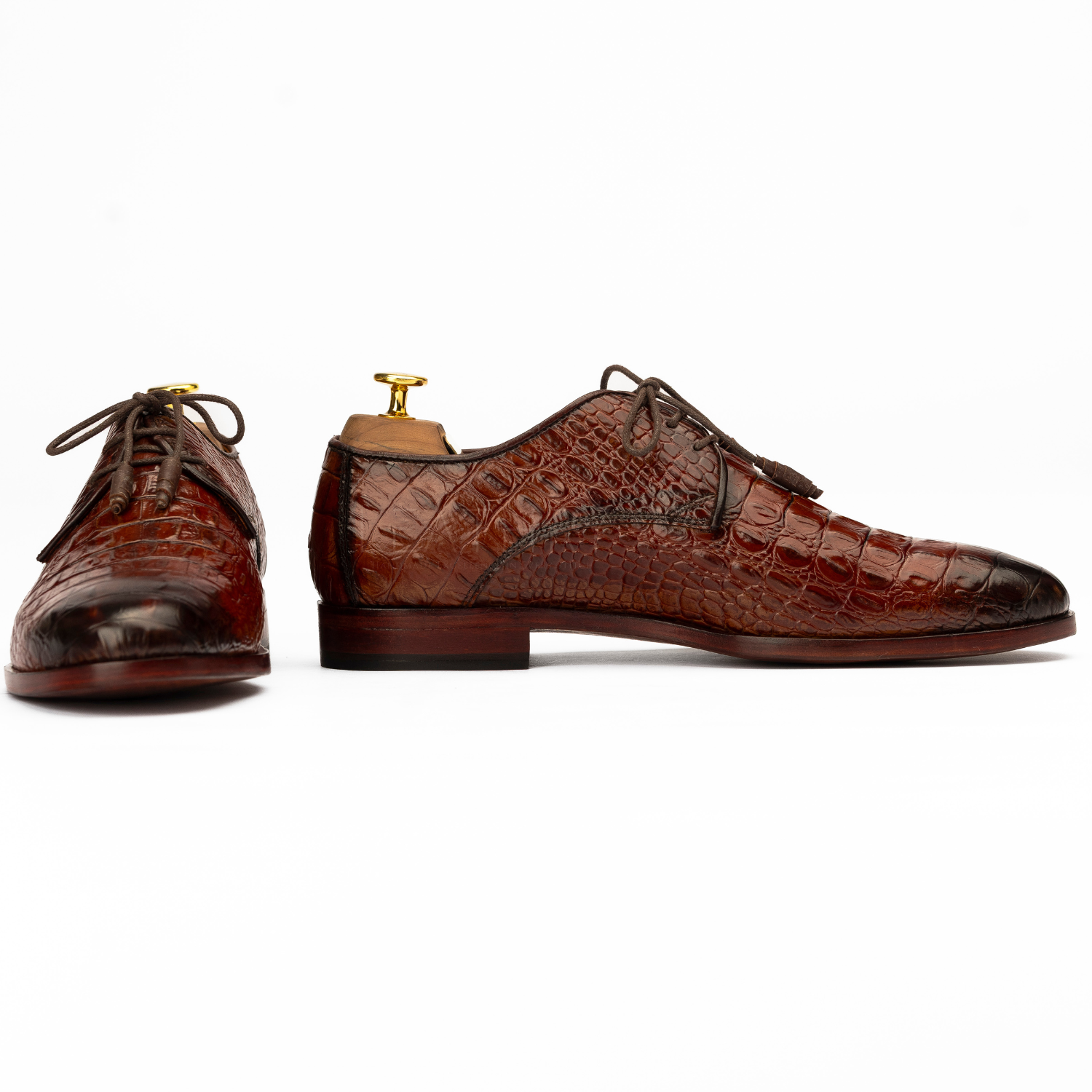 Men’s Brown Crocodile-Embossed Calfskin Leather Dress Shoes