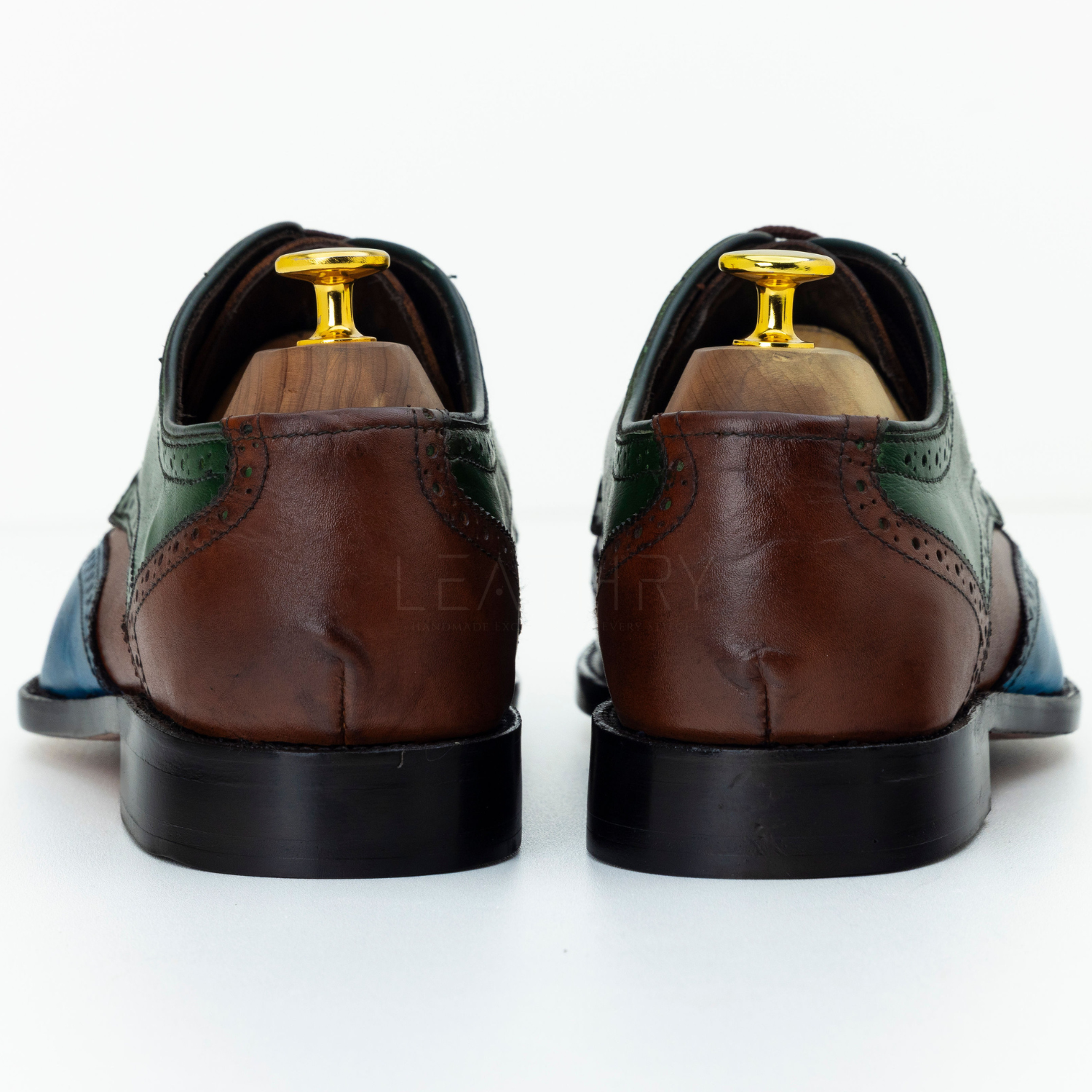 • Upper: Hand-Painted 100% Calf Leather (Blue, Brown, Green)