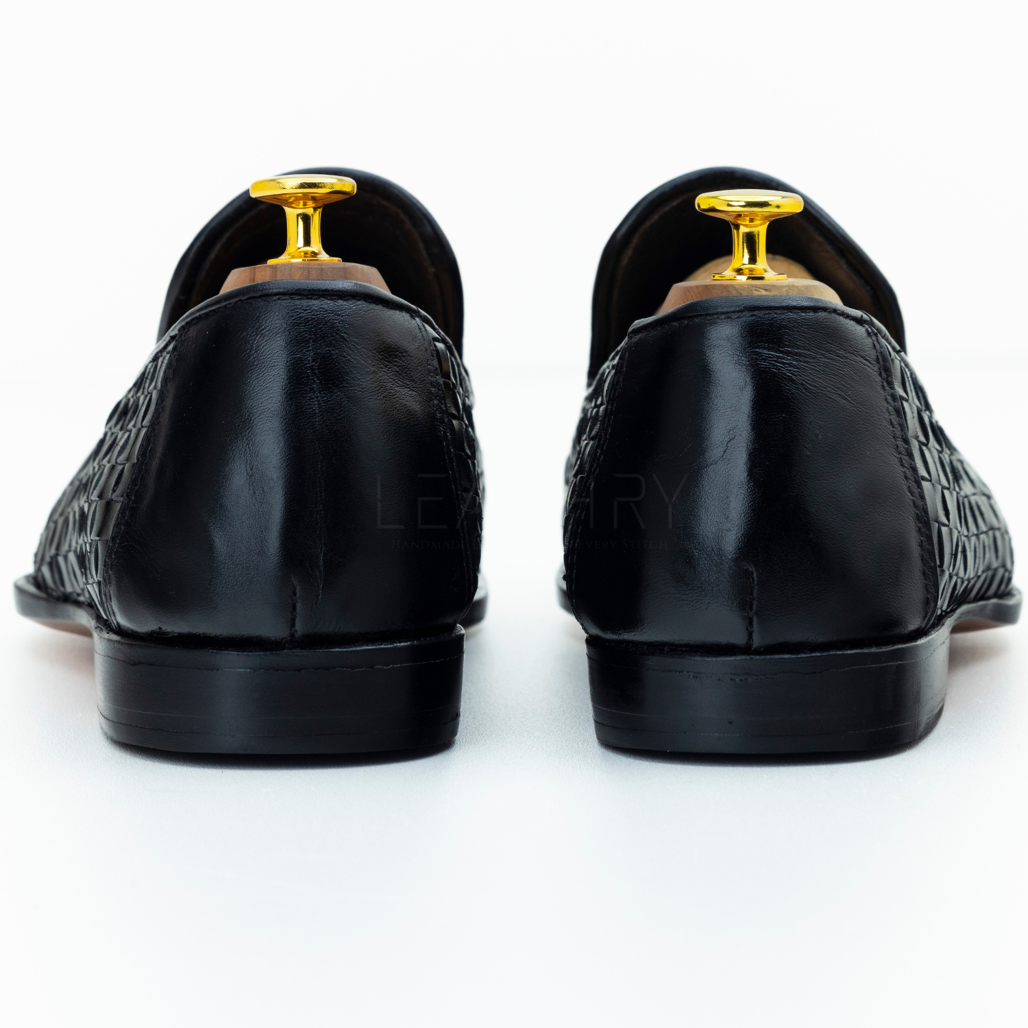 • Color: Black (woven leather upper)
