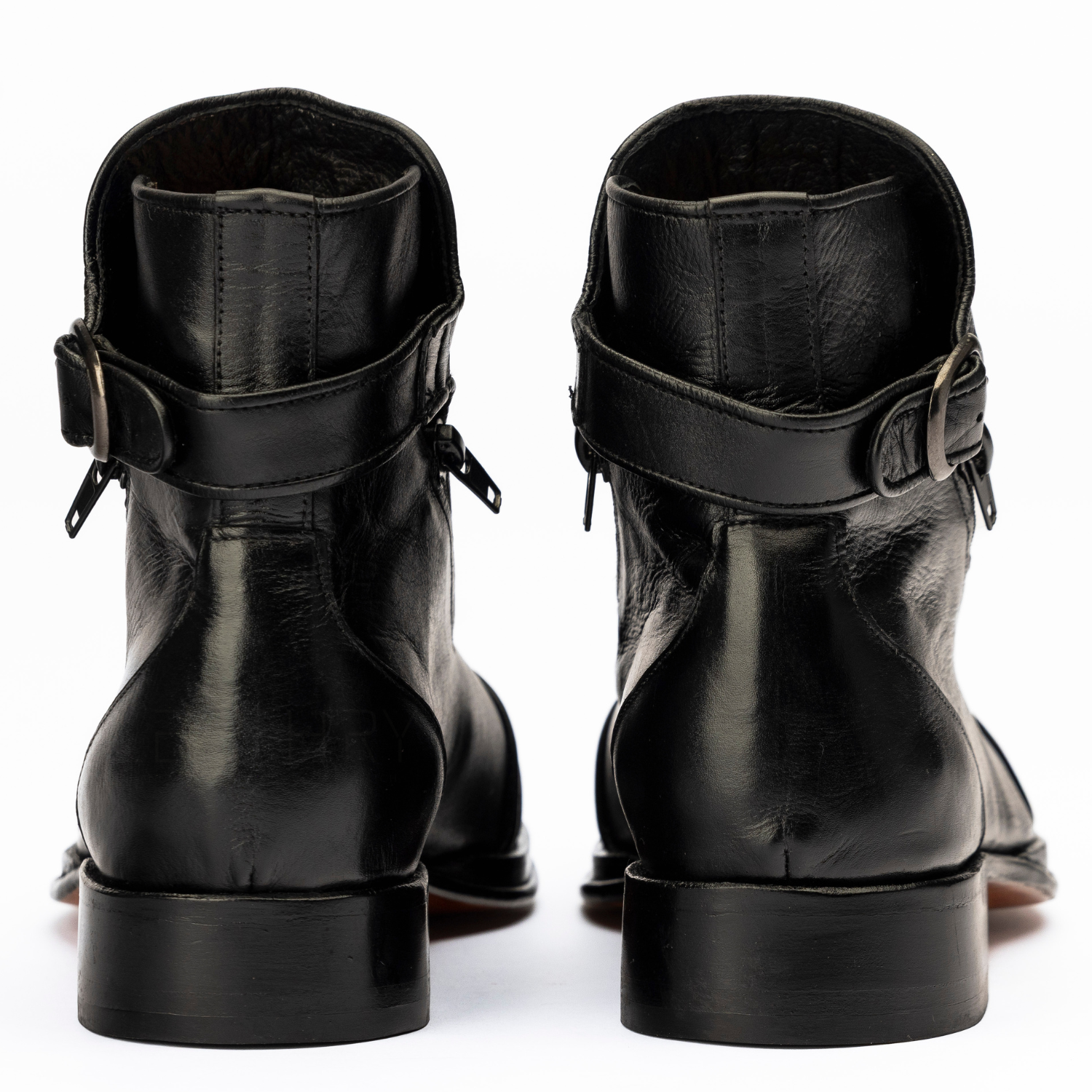 Men’s Black Patina Leather Military-Style Lace-Up Boots
