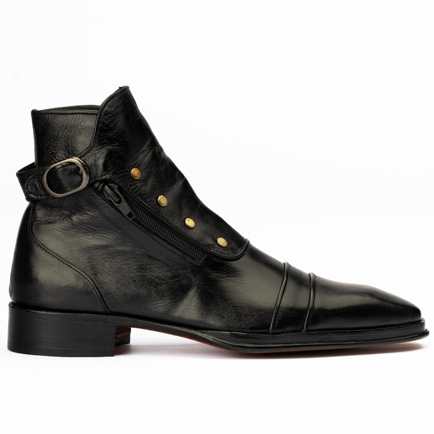 • Closure: Side Zipper with Monk Strap Buckle