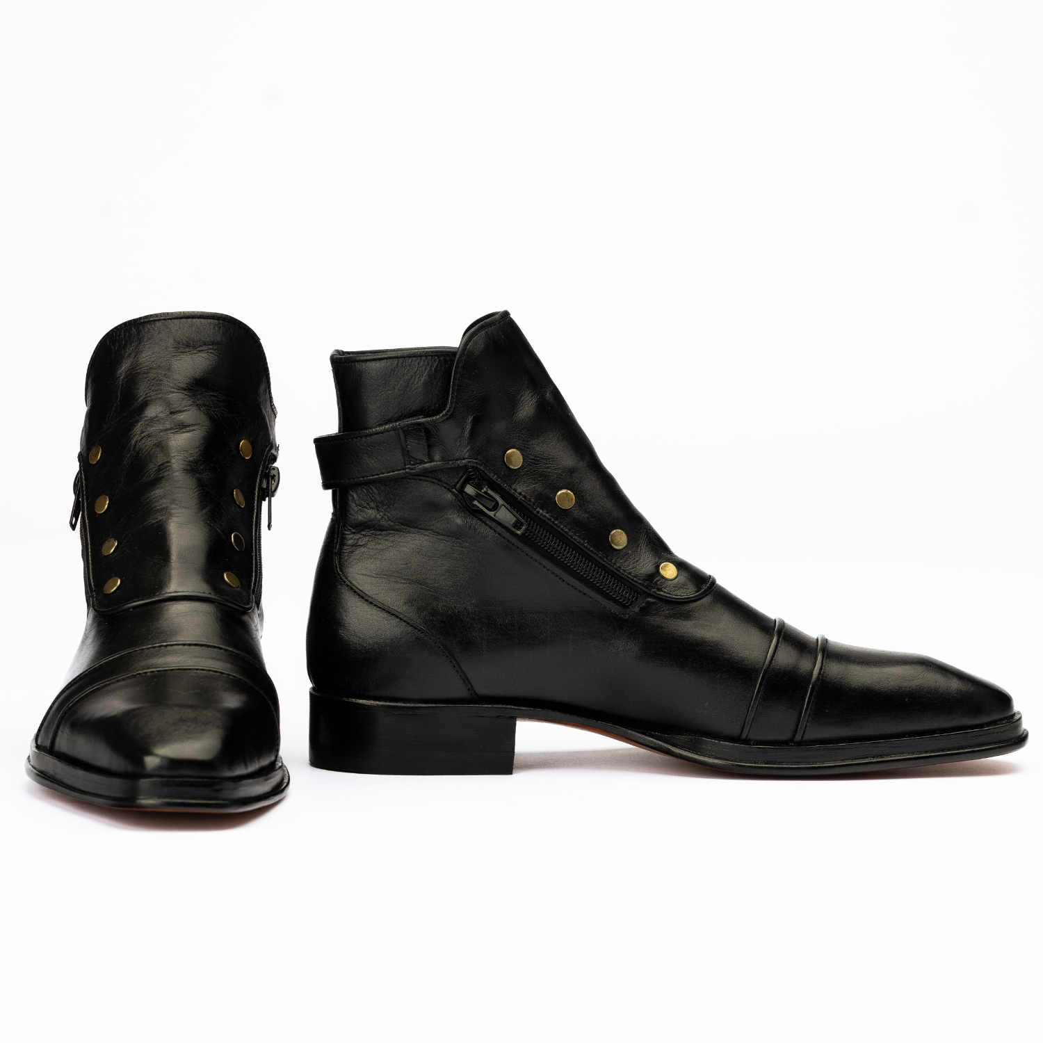 Step into heritage style with The Pierce, a handcrafted military-inspired ankle boot made from genuine calf leather and finished in hand-painted black patina. Designed with a side zipper, monk strap, and Goodyear welted sole for lasting comfort and bold appeal.