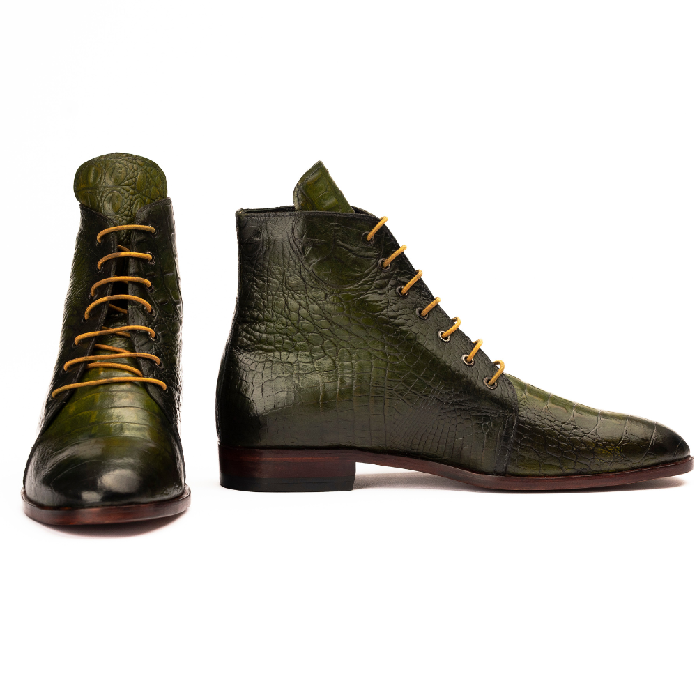 • Upper Material: 100% Calf Leather (Crocodile Embossed, Hand-Painted Green)