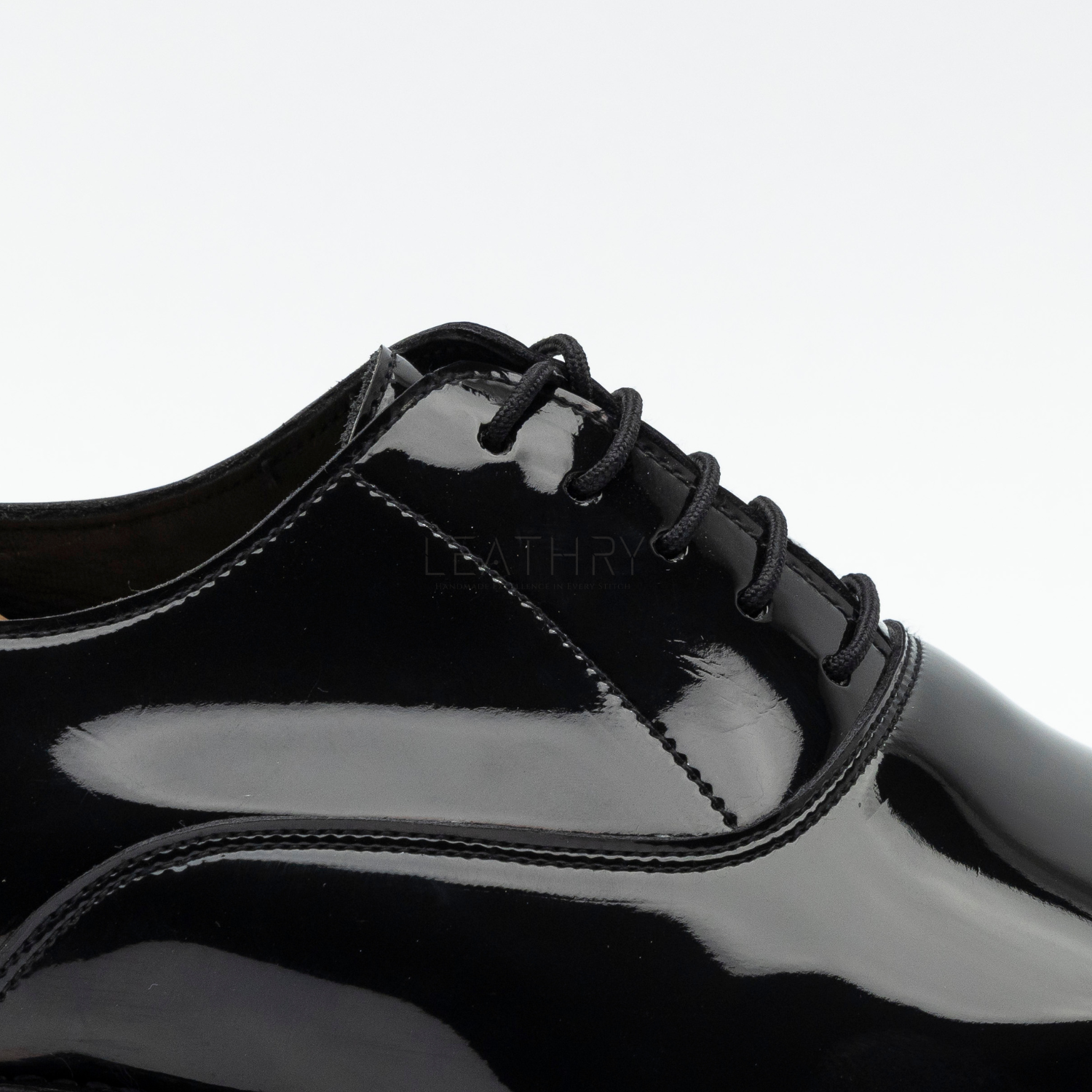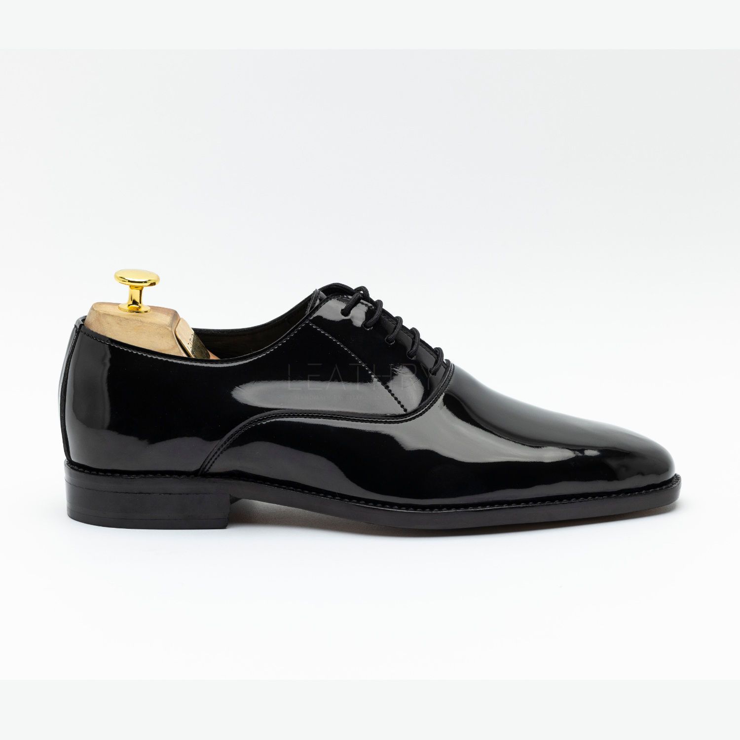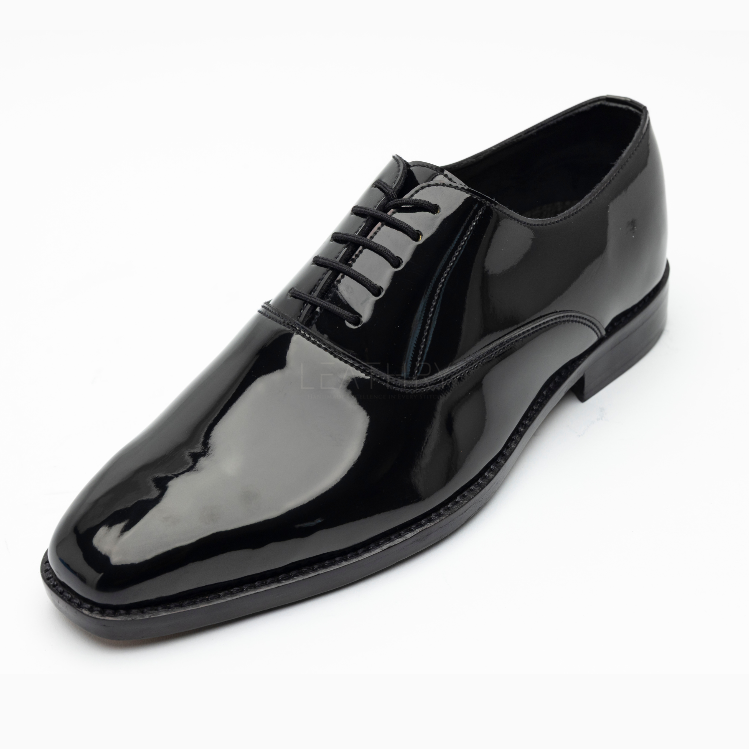 The Ulwin is a handmade black patent leather Oxford with a sleek, plain-front design—perfect for formal and evening occasions. Crafted with a Goodyear welted lightweight leather sole, breathable calfskin lining, and a medium round toe for timeless elegance.