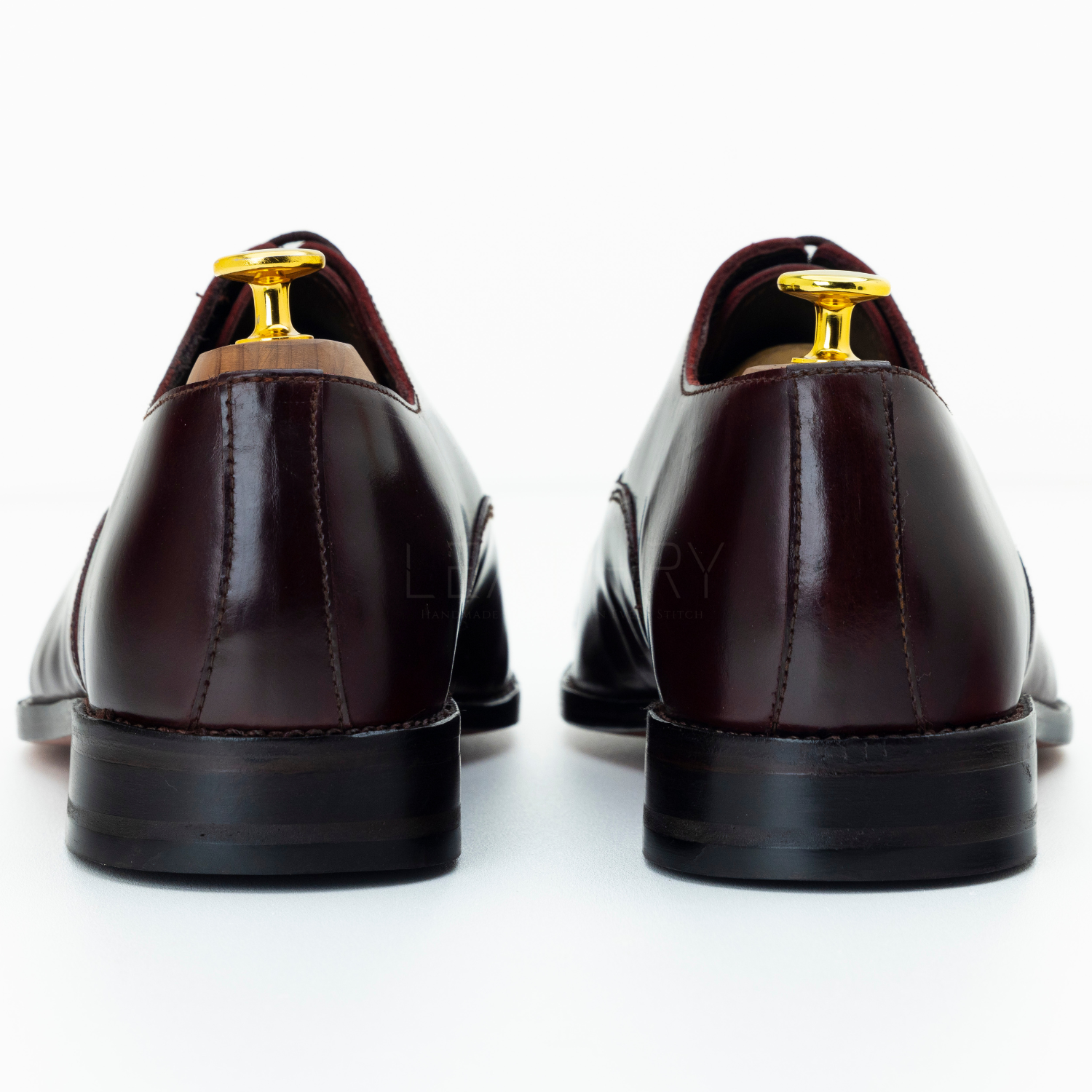 The Verren | Handmade Burgundy Oxford – A refined, hand-polished Oxford crafted from premium calf leather with a square toe, stacked leather & wood heel, and Goodyear welted sole. A perfect balance of heritage craftsmanship and modern sophistication.